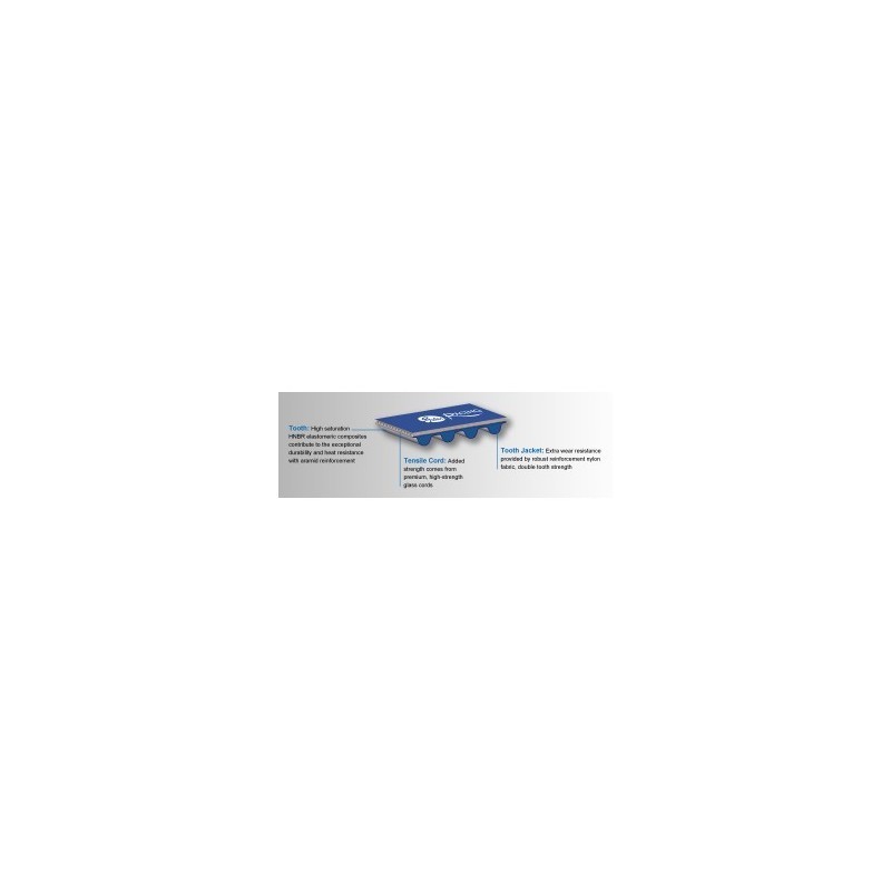 - Gripping teeth with aramid fiber technology and high saturation HNBR elastomeric composites for exceptional durability and heat resistance.
